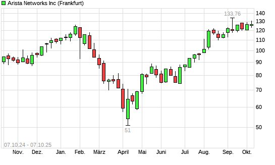 Mit dem Anstieg auf 128,86 EUR hat die Arista Networks-Aktie (ISIN US0404132054) am 06.10.2025 ein neues All-Time-High erreicht und damit den Kurs vom 11.09.2025 eingestellt.Die Arista Networks-Aktie ...weiterlesen