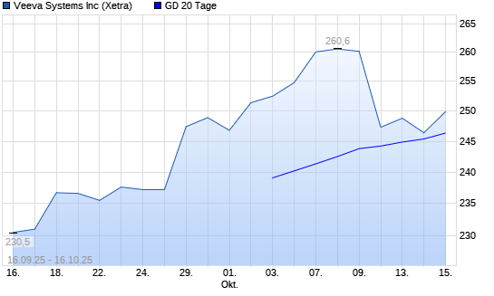 Mit dem Anstieg auf 248,00 EUR hat die Veeva Systems A-Aktie am 15.10.2025 die 20-Tage-Linie nach oben gekreuzt.Die Veeva Systems A-Aktie befindet sich seit dem 28.05.2025 im langfristigen Aufwärtstrend ...weiterlesen