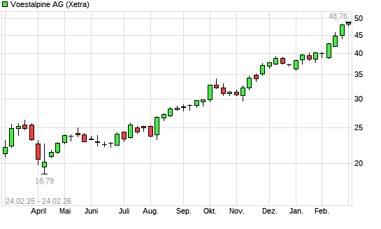 Mit dem Anstieg auf 48,52 EUR hat die Voestalpine-Aktie (ISIN AT0000937503) am 23.02.2026 ein neues 5-Jahres-Hoch erreicht und damit den Kurs vom 20.02.2026 ...weiterlesen