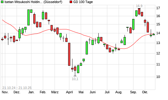 Mit dem Anstieg auf 14,10 EUR hat die Isetan Mitsukoshi Holdings-Aktie am 20.10.2025 die 100-Tage-Linie nach oben gekreuzt.Die Isetan Mitsukoshi Holdings-Aktie befindet sich seit dem 14.08.2025 ...weiterlesen