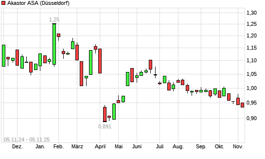 Mit dem Rücksetzer auf 0,94 EUR hat die Akastor ASA-Aktie (ISIN NO0010215684) am 04.11.2025 ein neues 6-Monats-Tief erreicht und damit den Kurs vom 03.11.2025 eingestellt.Die Akastor ASA-Aktie ...weiterlesen