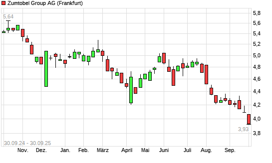 Mit dem Rücksetzer auf 4,06 EUR hat die Zumtobel-Aktie (ISIN AT0000837307) am 29.09.2025 ein neues All-Time-Low erreicht und damit den Kurs vom 22.09.2025 eingestellt.Die Zumtobel-Aktie ...weiterlesen