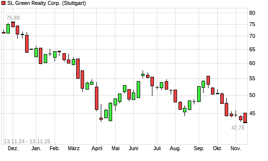 Mit dem Rücksetzer auf 42,93 EUR hat die SL Green Realty-Aktie (ISIN US78440X8873) am 12.11.2025 ein neues 12-Monats-Tief erreicht und damit den Kurs vom 08.04.2025 eingestellt.Die SL Green ...weiterlesen