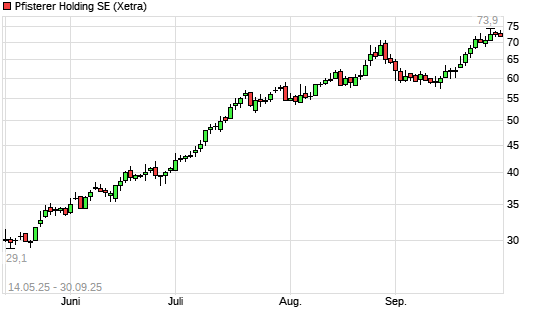 Mit dem Anstieg auf 72,30 EUR hat die Pfisterer Holding SE-Aktie (ISIN DE000PFSE212) am 29.09.2025 ein neues All-Time-High erreicht und damit den Kurs vom 26.09.2025 eingestellt.Der Abstand ...weiterlesen