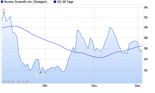 Mit dem Rücksetzer auf 86,00 EUR hat die Boston Scientific-Aktie am 02.12.2025 die 38-Tage-Linie nach unten gekreuzt.Die Boston Scientific-Aktie befindet sich seit dem 14.11.2025 im langfristigen ...weiterlesen