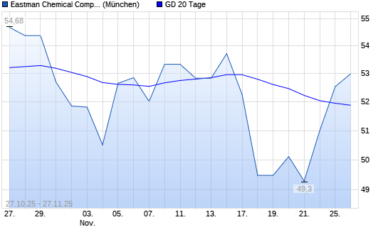 Mit dem Anstieg auf 52,12 EUR hat die Eastman Chemical Company-Aktie am 26.11.2025 die 20-Tage-Linie nach oben gekreuzt.Die Eastman Chemical Company-Aktie befindet sich seit dem 04.03.2025 im ...weiterlesen