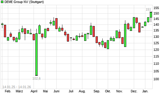 Mit dem Anstieg auf 148,40 EUR hat die DEME Group-Aktie (ISIN BE0974413453) am 13.01.2026 ein neues 12-Monats-Hoch erreicht und damit den Kurs vom 05.12.2025 eingestellt.Die ...weiterlesen
