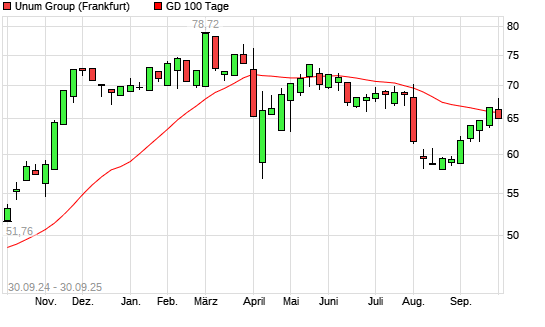 Mit dem Rücksetzer auf 65,92 EUR hat die Unum Group-Aktie am 29.09.2025 die 100-Tage-Linie nach unten gekreuzt.Die Unum Group-Aktie befindet sich seit dem 30.07.2025 im langfristigen Abwärtstrend ...weiterlesen
