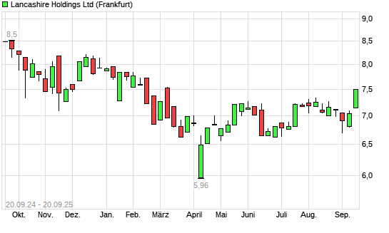 Mit dem Anstieg auf 7,41 EUR hat die Lancashire Holdings-Aktie (ISIN BMG5361W1047) am 19.09.2025 ein neues 6-Monats-Hoch erreicht und damit den Kurs vom 06.08.2025 eingestellt.Die Lancashire ...weiterlesen