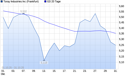 Mit dem Rücksetzer auf 5,28 EUR hat die Toray Industries-Aktie am 30.10.2025 die 20-Tage-Linie nach unten gekreuzt.Die Toray Industries-Aktie befindet sich seit dem 08.08.2025 im langfristigen ...weiterlesen