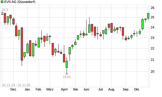 Mit dem Anstieg auf 25,20 EUR hat die EVN-Aktie (ISIN AT0000741053) am 31.10.2025 ein neues 6-Monats-Hoch erreicht und damit den Kurs vom 30.10.2025 eingestellt.Die EVN-Aktie befindet sich seit ...weiterlesen