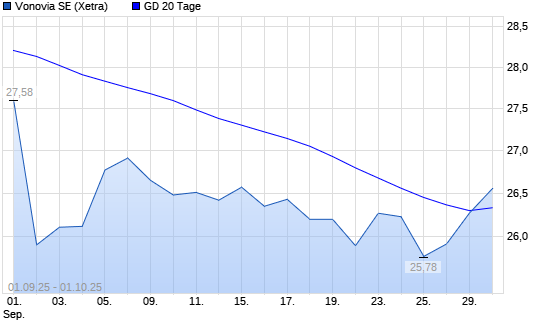 Mit dem Anstieg auf 26,53 EUR hat die Vonovia-Aktie am 30.09.2025 die 20-Tage-Linie nach oben gekreuzt.Die Vonovia-Aktie befindet sich seit dem 28.08.2025 im langfristigen Abwärtstrend und hat ...weiterlesen