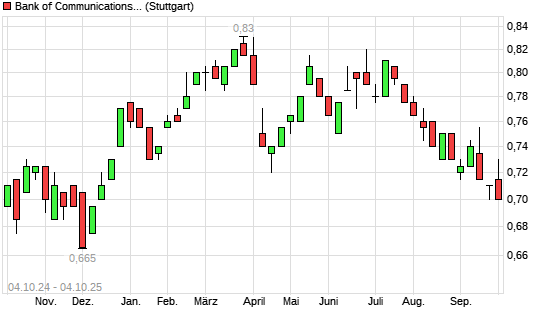 Mit dem Rücksetzer auf 0,69 EUR hat die Bank of Communications-Aktie (ISIN CNE100000205) am 03.10.2025 ein neues 6-Monats-Tief erreicht und damit den Kurs vom 22.09.2025 eingestellt.Die ...weiterlesen