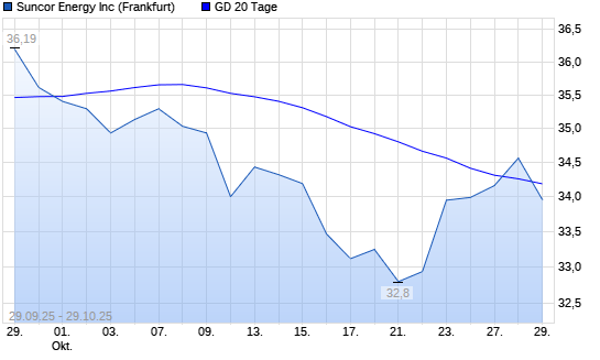 Mit dem Anstieg auf 34,56 EUR hat die Suncor Energy-Aktie am 28.10.2025 die 20-Tage-Linie nach oben gekreuzt.Die Suncor Energy-Aktie befindet sich seit dem 23.10.2025 im langfristigen Aufwärtstrend ...weiterlesen