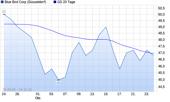 Mit dem Rücksetzer auf 46,20 EUR hat die Blue Bird-Aktie am 23.10.2025 die 20-Tage-Linie nach unten gekreuzt.Die Blue Bird-Aktie befindet sich seit dem 02.07.2025 im langfristigen Aufwärtstrend ...weiterlesen