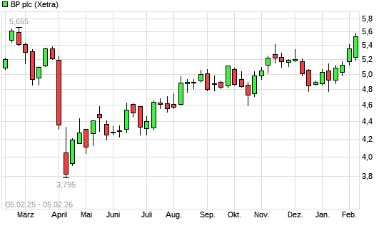 Mit dem Anstieg auf 5,56 EUR hat die BP-Aktie (ISIN GB0007980591) am 04.02.2026 ein neues 6-Monats-Hoch erreicht und damit den Kurs vom 03.02.2026 eingestellt.Die BP-Aktie befindet sich seit ...weiterlesen