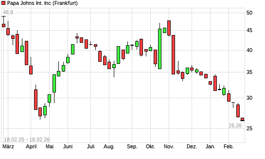Mit dem Rücksetzer auf 26,28 EUR hat die Papa Johns International-Aktie (ISIN US6988131024) am 17.02.2026 ein neues 10-Jahres-Tief erreicht und damit den Kurs vom ...weiterlesen