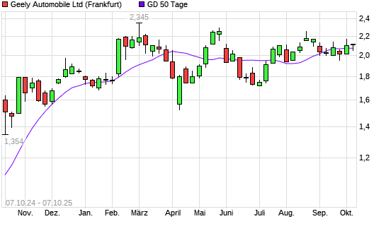 Mit dem Rücksetzer auf 2,06 EUR hat die Geely Automobile-Aktie am 06.10.2025 die 50-Tage-Linie nach unten gekreuzt.Die Geely Automobile-Aktie befindet sich seit dem 10.07.2025 im langfristigen ...weiterlesen