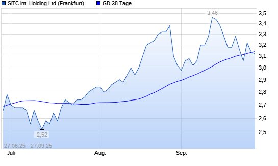 Mit dem Rücksetzer auf 3,10 EUR hat die SITC INTL Holding REGS-Aktie am 26.09.2025 die 38-Tage-Linie nach unten gekreuzt.Die SITC INTL Holding REGS-Aktie befindet sich seit dem 06.05.2025 ...weiterlesen