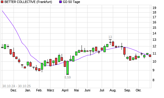Mit dem Anstieg auf 10,78 EUR hat die BETTER COLLECTIVE-Aktie am 29.10.2025 die 50-Tage-Linie nach oben gekreuzt.Die BETTER COLLECTIVE-Aktie befindet sich seit dem 27.10.2025 im langfristigen ...weiterlesen