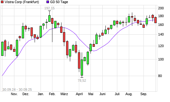 Mit dem Rücksetzer auf 169,00 EUR hat die Vistra Energy-Aktie am 29.09.2025 die 50-Tage-Linie nach unten gekreuzt.Die Vistra Energy-Aktie befindet sich seit dem 12.05.2025 im langfristigen ...weiterlesen