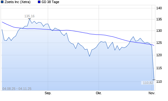 Mit dem Rücksetzer auf 123,70 EUR hat die Zoetis-Aktie am 03.11.2025 die 38-Tage-Linie nach unten gekreuzt.Die Zoetis-Aktie befindet sich seit dem 13.02.2025 im ...weiterlesen