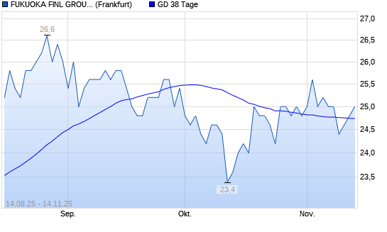 Mit dem Anstieg auf 24,80 EUR hat die Fukuoka Financial Group-Aktie am 13.11.2025 die 38-Tage-Linie nach oben gekreuzt.Die Fukuoka Financial Group-Aktie befindet sich seit dem 20.10.2025 im ...weiterlesen