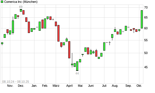 Mit dem Anstieg auf 68,00 EUR hat die Comerica-Aktie (ISIN US2003401070) am 07.10.2025 ein neues 6-Monats-Hoch erreicht und damit den Kurs vom 28.08.2025 eingestellt.Die Comerica-Aktie befindet ...weiterlesen