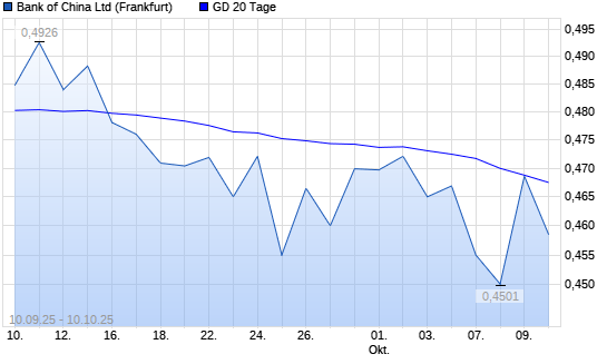 Mit dem Anstieg auf 0,47 EUR hat die Bank of China-Aktie am 09.10.2025 die 20-Tage-Linie nach oben gekreuzt.Die Bank of China-Aktie befindet sich seit dem 08.08.2025 im langfristigen Abwärtstrend ...weiterlesen