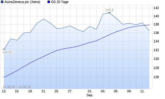Mit dem Rücksetzer auf 135,00 EUR hat die Astrazeneca-Aktie am 12.09.2025 die 20-Tage-Linie nach unten gekreuzt.Die Astrazeneca-Aktie befindet sich seit dem 13.08.2025 im langfristigen ...weiterlesen