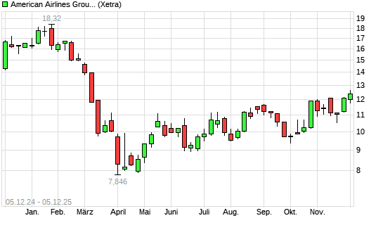 Mit dem Anstieg auf 12,39 EUR hat die American Airlines-Aktie (ISIN US02376R1023) am 04.12.2025 ein neues 6-Monats-Hoch erreicht und damit den Kurs vom 03.12.2025 eingestellt.Die American Airlines-Aktie ...weiterlesen