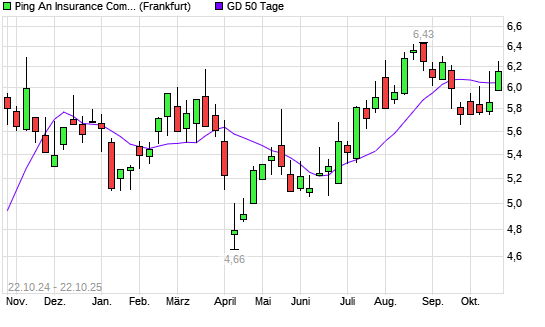 Mit dem Anstieg auf 6,17 EUR hat die Ping An Insurance China-Aktie am 21.10.2025 die 50-Tage-Linie nach oben gekreuzt.Die Ping An Insurance China-Aktie befindet sich seit dem 10.07.2025 im langfristigen ...weiterlesen