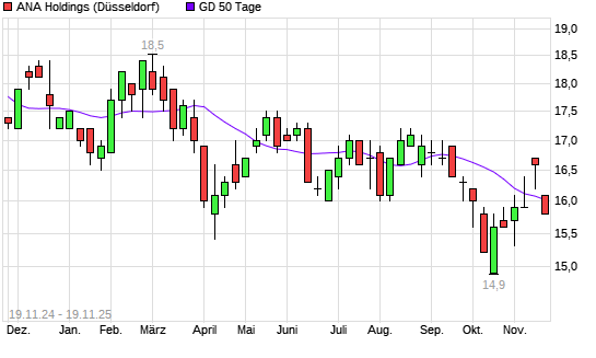 Mit dem Rücksetzer auf 15,90 EUR hat die ANA Holdings-Aktie am 18.11.2025 die 50-Tage-Linie nach unten gekreuzt.Die ANA Holdings-Aktie befindet sich seit dem 11.11.2025 im langfristigen ...weiterlesen