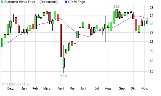 Mit dem Anstieg auf 24,00 EUR hat die Sumitomo Mitsui Trust Holdings-Aktie am 06.11.2025 die 50-Tage-Linie nach oben gekreuzt.Die Sumitomo Mitsui Trust Holdings-Aktie befindet sich seit dem ...weiterlesen