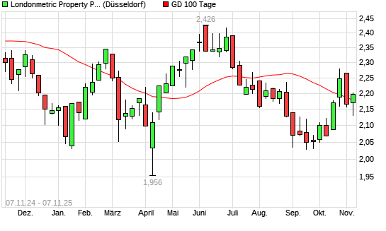 Mit dem Anstieg auf 2,19 EUR hat die Londonmetric Property-Aktie am 06.11.2025 die 100-Tage-Linie nach oben gekreuzt.Die Londonmetric Property-Aktie befindet sich seit dem 29.10.2025 im langfristigen ...weiterlesen