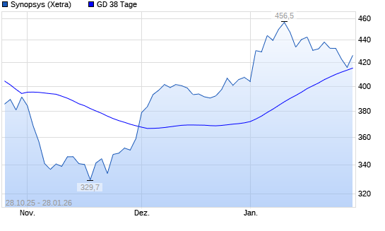 Mit dem Rücksetzer auf 415,45 EUR hat die Synopsys-Aktie am 27.01.2026 die 38-Tage-Linie nach unten gekreuzt.Die Synopsys-Aktie befindet sich seit dem 26.01.2026 im ...weiterlesen