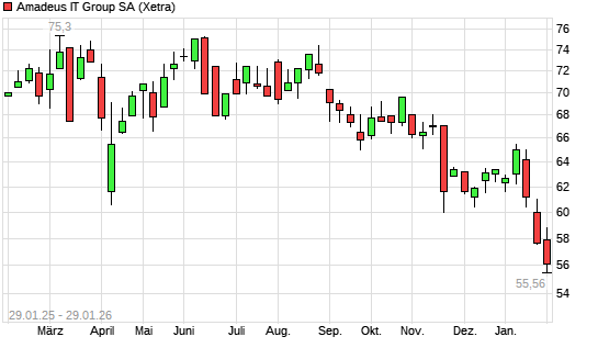 Mit dem Rücksetzer auf 56,70 EUR hat die Amadeus IT-Aktie (ISIN ES0109067019) am 28.01.2026 ein neues 12-Monats-Tief erreicht und damit den Kurs vom 27.01.2026 eingestellt.Die ...weiterlesen