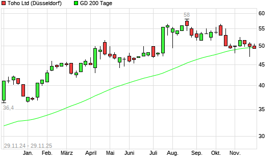 Mit dem Rücksetzer auf 49,40 EUR hat die Toho-Aktie am 28.11.2025 die 200-Tage-Linie nach unten gekreuzt.Die Toho-Aktie befand sich seit dem 21.11.2025 im langfristigen Aufwärtstrend und ...weiterlesen