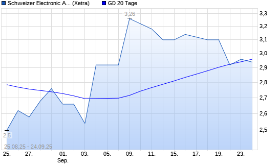 Mit dem Rücksetzer auf 2,74 EUR hat die Schweizer Electronic-Aktie am 23.09.2025 die 20-Tage-Linie nach unten gekreuzt.Die Schweizer Electronic-Aktie befindet sich seit dem 11.09.2025 im ...weiterlesen
