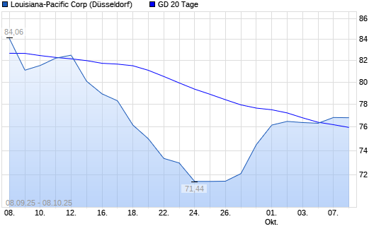 Mit dem Rücksetzer auf 75,62 EUR hat die Louisiana-Pacific-Aktie am 07.10.2025 die 20-Tage-Linie nach unten gekreuzt.Die Louisiana-Pacific-Aktie befindet sich seit dem 04.03.2025 im langfristigen ...weiterlesen