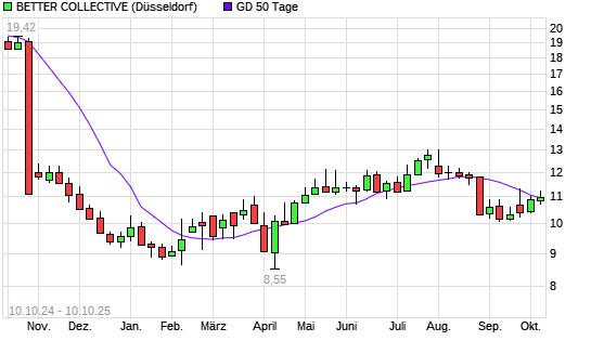Mit dem Anstieg auf 11,14 EUR hat die BETTER COLLECTIVE-Aktie am 09.10.2025 die 50-Tage-Linie nach oben gekreuzt.Die BETTER COLLECTIVE-Aktie befindet sich seit dem 06.10.2025 im langfristigen ...weiterlesen