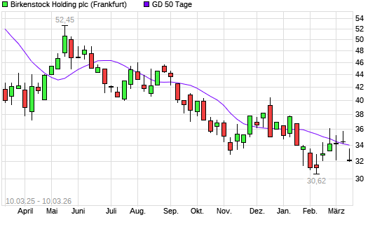 Mit dem Rücksetzer auf 32,40 EUR hat die Birkenstock Holding-Aktie am 09.03.2026 die 50-Tage-Linie nach unten gekreuzt.Die Birkenstock Holding-Aktie befindet sich seit dem ...weiterlesen