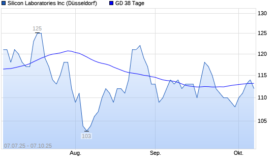 Mit dem Anstieg auf 115,00 EUR hat die Silicon Labs-Aktie am 06.10.2025 die 38-Tage-Linie nach oben gekreuzt.Die Silicon Labs-Aktie befindet sich seit dem 22.09.2025 im langfristigen Abwärtstrend ...weiterlesen