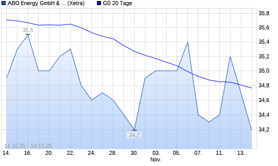 Mit dem Rücksetzer auf 34,70 EUR hat die ABO Wind-Aktie am 13.11.2025 die 20-Tage-Linie nach unten gekreuzt.Die ABO Wind-Aktie befindet sich seit dem 15.08.2025 im langfristigen Abwärtstrend ...weiterlesen