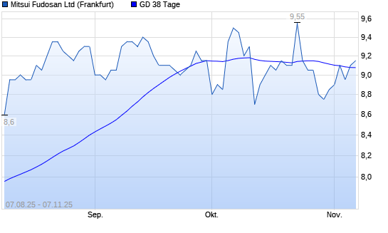 Mit dem Anstieg auf 9,10 EUR hat die Mitsui Fudosan-Aktie am 06.11.2025 die 38-Tage-Linie nach oben gekreuzt.Die Mitsui Fudosan-Aktie befindet sich seit dem 04.08.2025 im langfristigen Aufwärtstrend ...weiterlesen