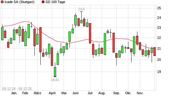 Mit dem Rücksetzer auf 20,88 EUR hat die ICADE-Aktie am 04.12.2025 die 100-Tage-Linie nach unten gekreuzt.Die ICADE-Aktie befindet sich seit dem 28.10.2025 im langfristigen Abwärtstrend ...weiterlesen