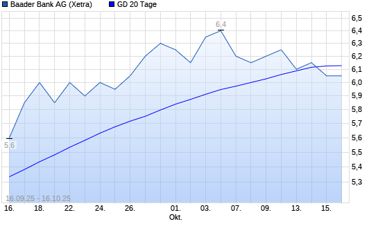 Mit dem Rücksetzer auf 5,95 EUR hat die Baader Bank-Aktie am 15.10.2025 die 20-Tage-Linie nach unten gekreuzt.Die Baader Bank-Aktie befindet sich seit dem 23.04.2025 im langfristigen Aufwärtstrend ...weiterlesen