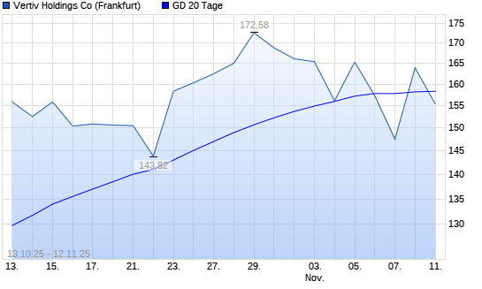 Mit dem Rücksetzer auf 155,36 EUR hat die Vertiv Holdings-Aktie am 11.11.2025 die 20-Tage-Linie nach unten gekreuzt.Die Vertiv Holdings-Aktie befindet sich seit dem 16.06.2025 im langfristigen ...weiterlesen