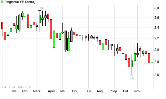 Mit dem Rücksetzer auf 2,62 EUR hat die Ringmetall-Aktie (ISIN DE000A3E5E55) am 03.12.2025 ein neues 12-Monats-Tief erreicht und damit den Kurs vom 13.10.2025 eingestellt.Die Ringmetall-Aktie ...weiterlesen