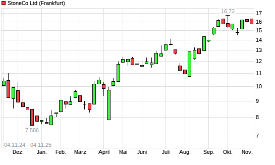 Mit dem Anstieg auf 16,64 EUR hat die Stoneco-Aktie (ISIN KYG851581069) am 03.11.2025 ein neues 12-Monats-Hoch erreicht und damit den Kurs vom 29.09.2025 eingestellt.Die Stoneco-Aktie befindet ...weiterlesen